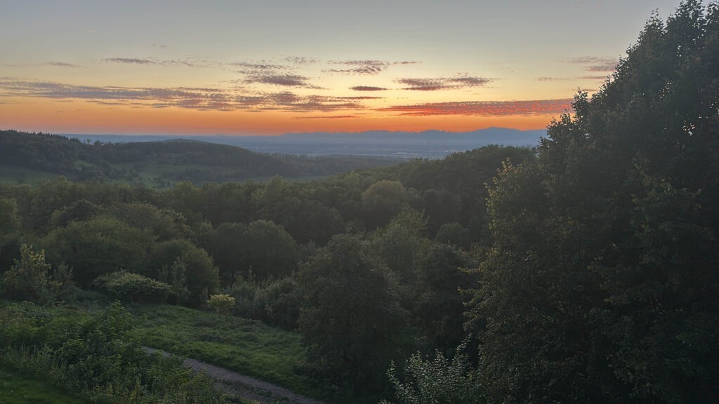 Dieser Beitrag beschreibt keine Urlaubsreise, sondern den Aufenthalt in der Reha-Klinik Hausbaden in Badenweiler. Am 10. September musste ich mir ein neues Hüftgelenk implantieren lassen, da die Schmerzen so stark wurden, dass an eine Reise nicht zu denken war. Drei Tage nach der OP wurde ich vom Merian-Iselin-Krankenhaus in Basel entlassen. Nach ein paar Tagen zuhause brachte mich Karin am 16.09. nach Badenweiler in die Reha-Klinik Hausbaden. Mein Zimmer liegt Richtung Rheinebene und so boten sich immer wieder spektakuläre Sonnenuntergange und Morgenstimmungen.