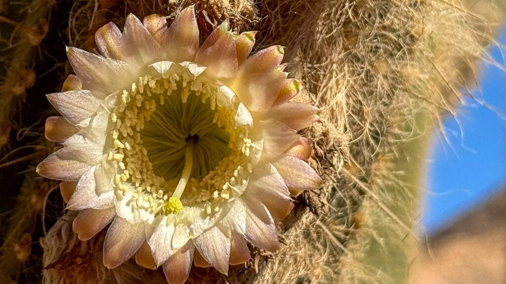 Der kleine Park des Dorfs bot botanische Überraschungen – schöne blühende Kakteen, Bananen und einen Annonenbaum mit Früchten.
