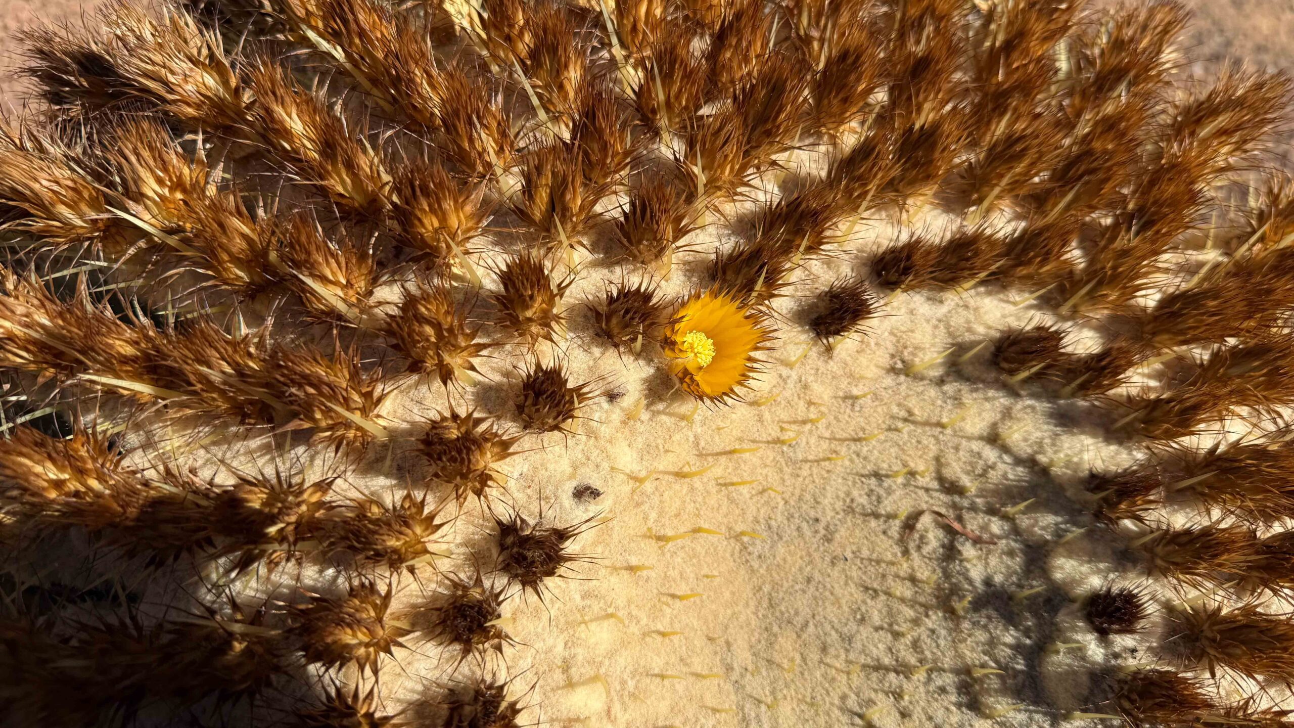 Abends fiel uns auf, dass wir nicht genügend Brot für das Frühstück hatten. Wir gingen also zu Fuss ins Dorf, sind nur 300 m bis zum Supermarkt. Auf dem Rückweg ging die Sonne langsam unter. Die Spitzen der Kakteen sahen dann aus wie eine Menschenmenge.