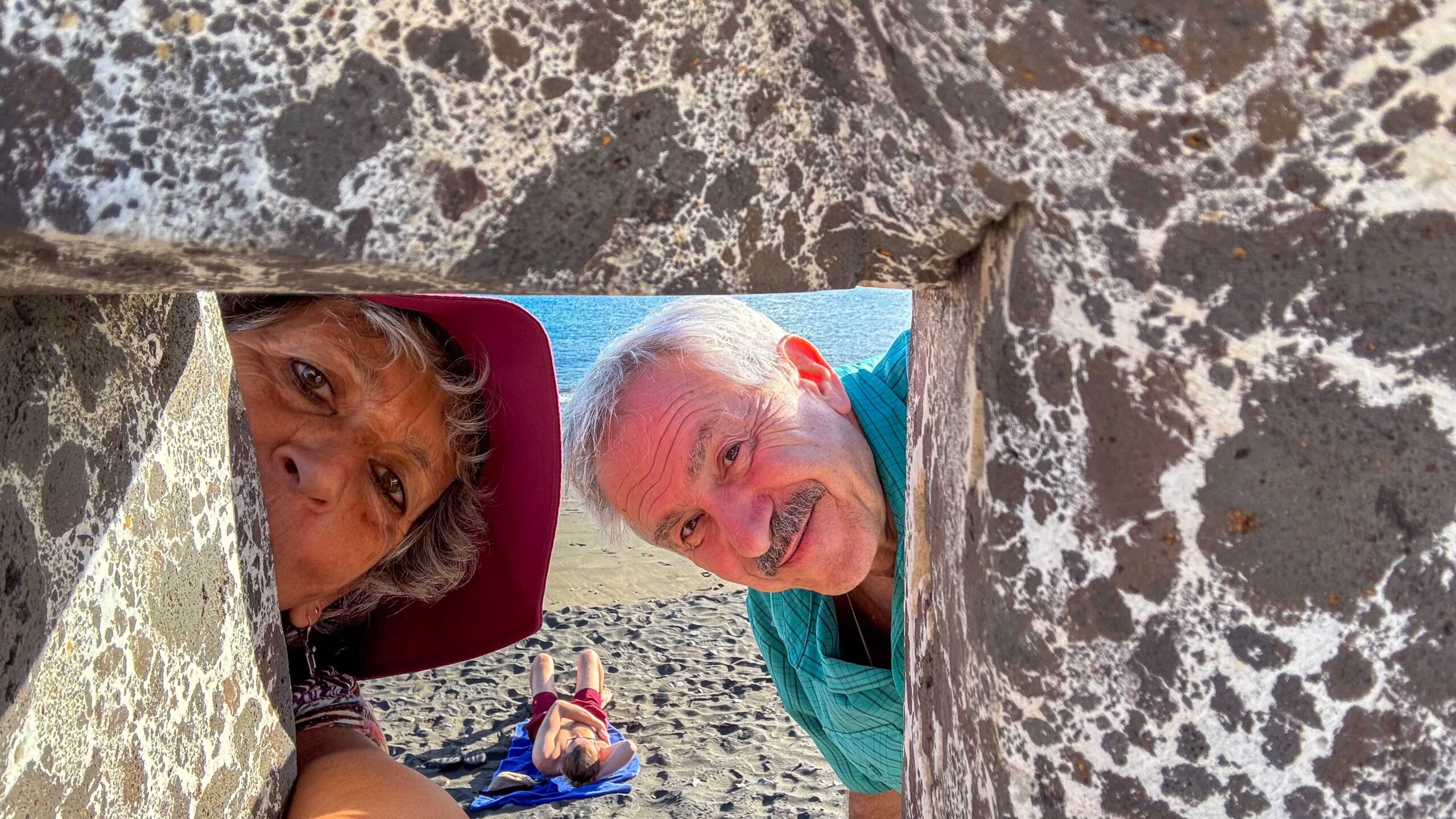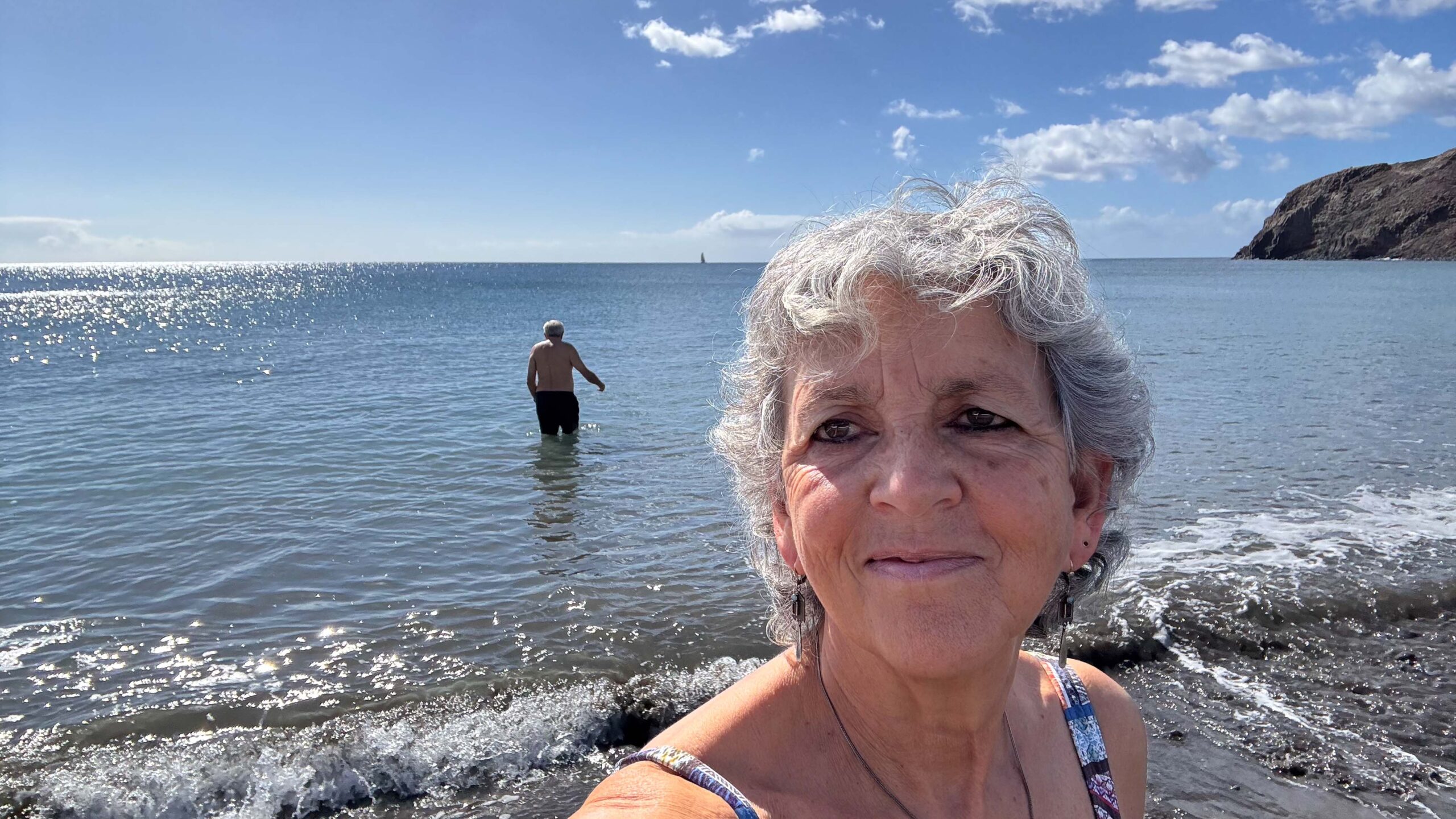 Angesichts der Temperatur von 24 °C machten wir uns bald auf den Weg und nahmen ein weiteres Bad im Meer. Allerdings lud der schwarze Sand nicht zum Liegen am Strand ein. Wir setzten uns wieder auf eine Bank und genossen Sonne und Meer.