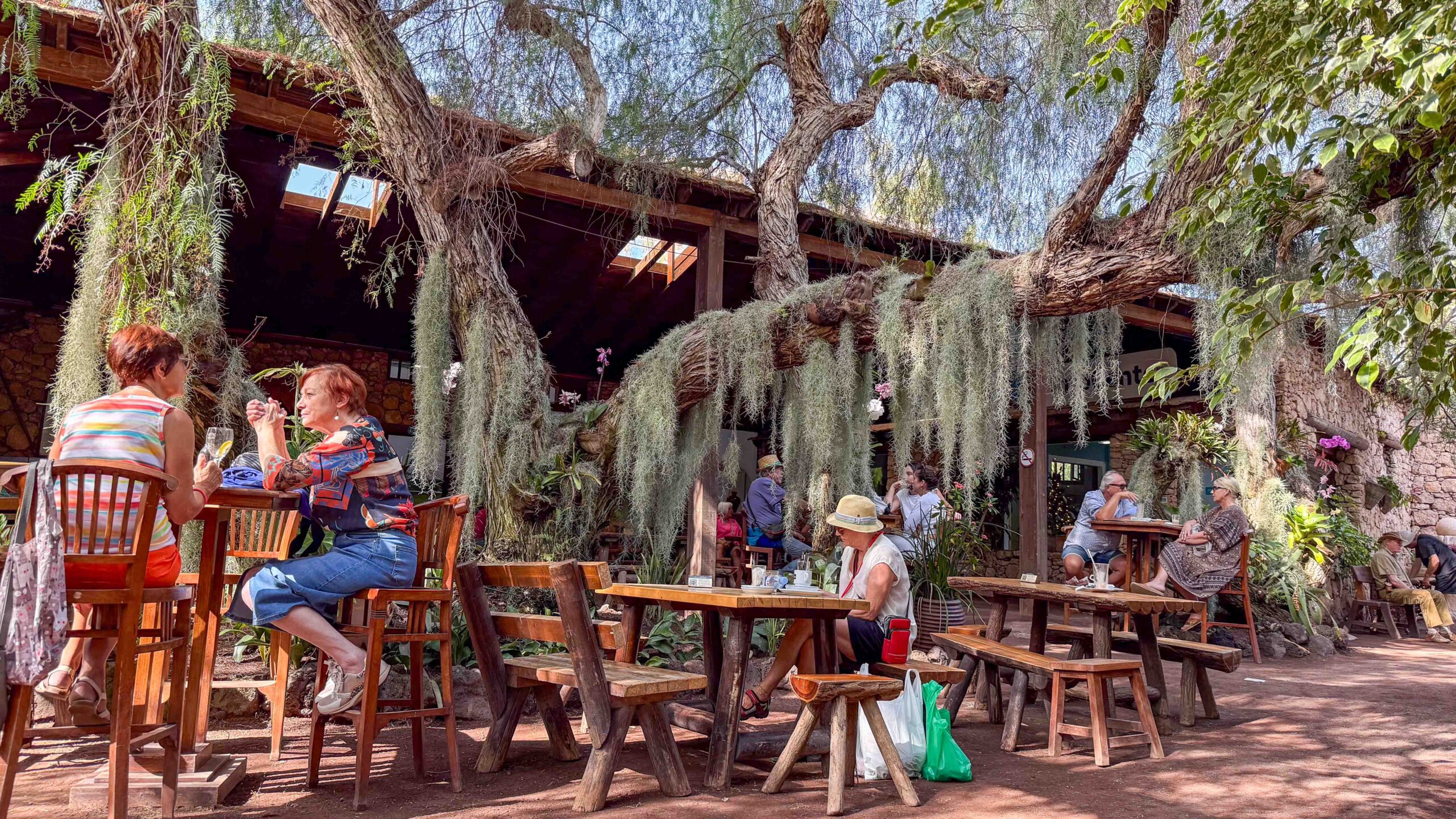 Wir fuhren noch weiter zum Restaurante Mirador de Sotavento, dabei fiel uns auf, dass die Temperatur auf über 26 °C angestiegen war und dass man keine Fernsicht mehr hatte. Wenn man ins Land schaute, sah man kaum die Hügel in einem Kilometer Entfernung, so viel Saharastaub war in der Luft.