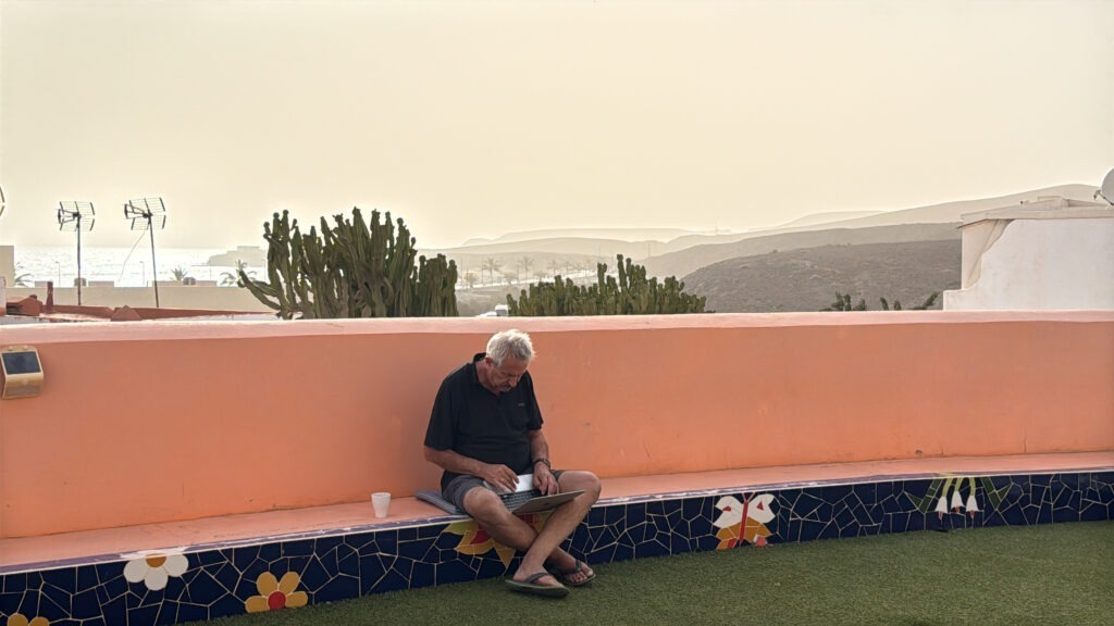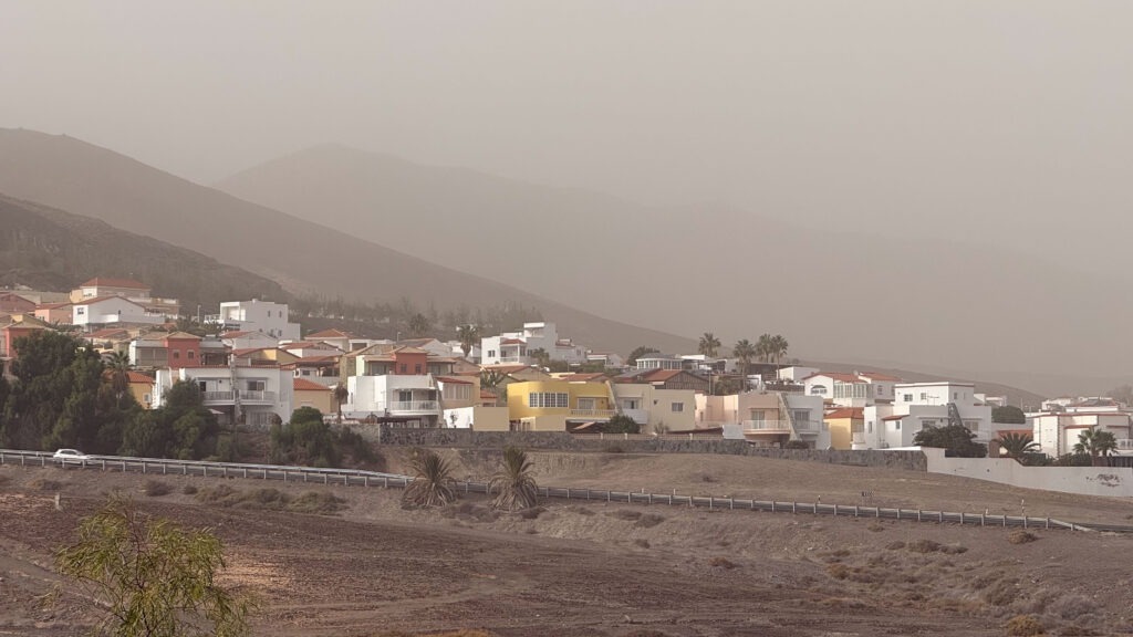 Wir aßen die Reste der gestrigen Paella, dann begann ich den heutigen Blog zu schreiben. Inzwischen verhindert der Staub in der Luft, dass die Sonnenstrahlen noch bei uns ankommen.