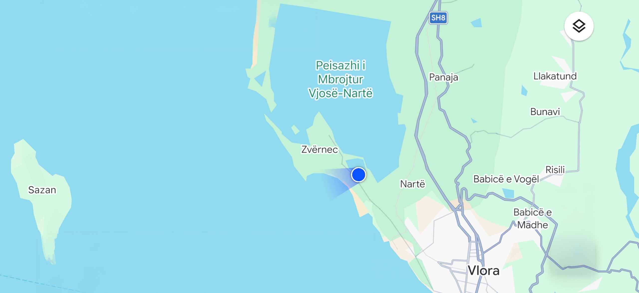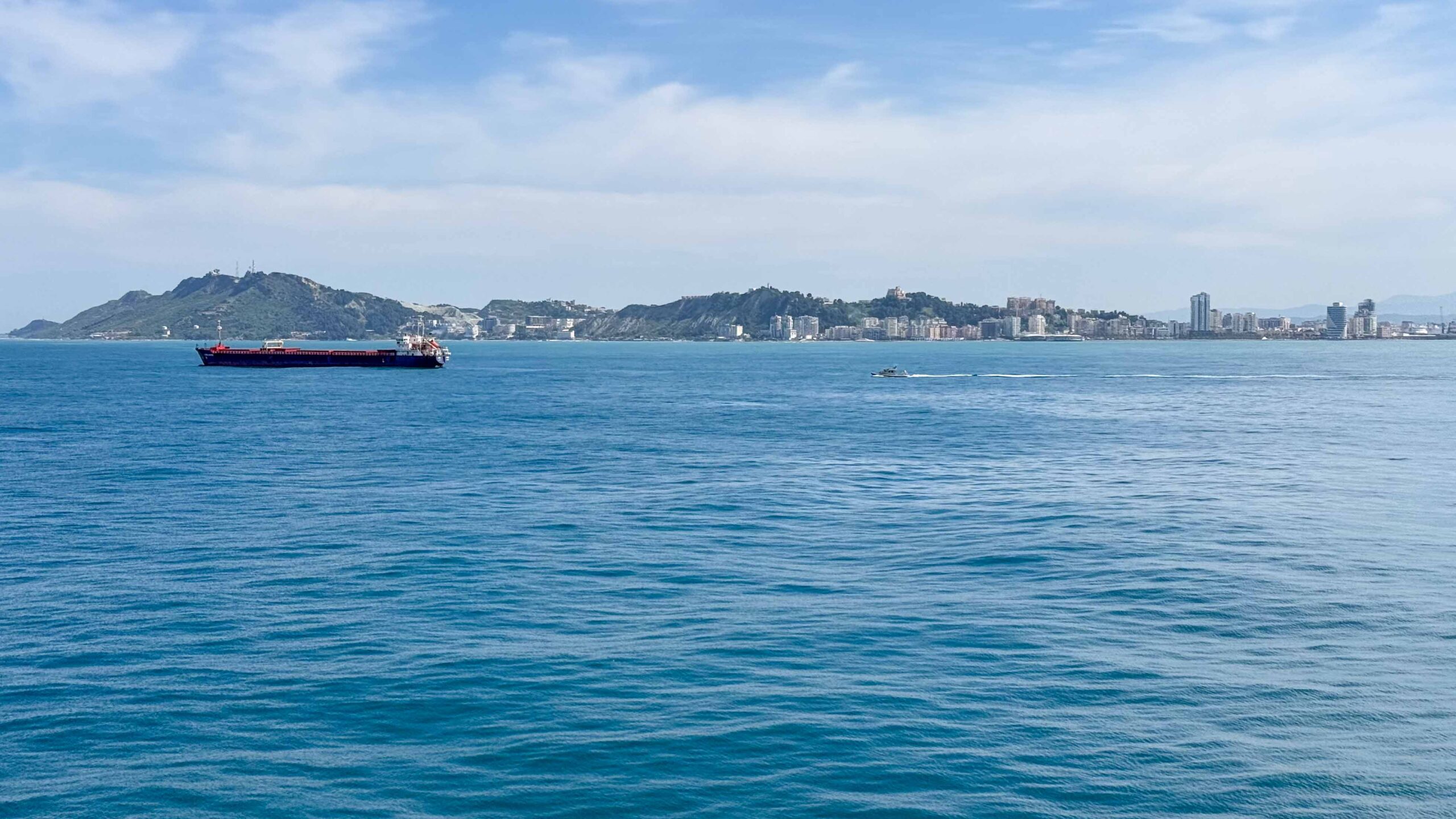 Um 8:30 Uhr wurden wir aufgefordert, die Kabinen zu räumen. Dieser Aufruf wurde aber bis 10:00 Uhr immer mal wieder durchgesagt, scheinbar hatten nicht viele Passagiere darauf reagiert. Etwa um 10:00 Uhr wurde durchgesagt, dass die Passagiere jetzt das Schiff verlassen könnten. Wir gingen daraufhin zum Auto, saßen dort aber fast eine Stunde zwischen LKWs und Transportern fest, bis wir endlich rausfahren durften. Dann stellten wir uns noch an der falschen Zollabfertigung an und verliessen den Hafen erst um ca. 11:30 Uhr. Wir fuhren direkt auf die Autobahn Richtung Vlora (Geschwindigkeitsbegrenzung 90 km/h). Diesel kostete momentan zwischen 199 und 202 Lek, entspricht ziemlich genau 2 EUR.