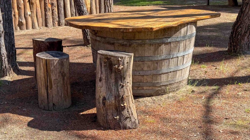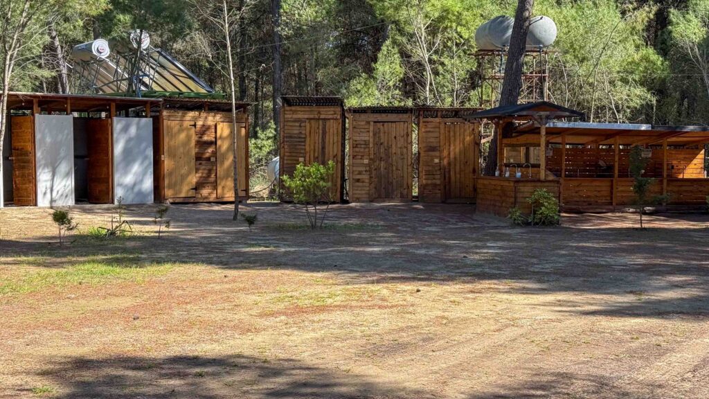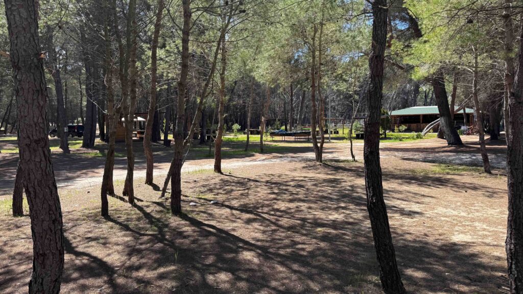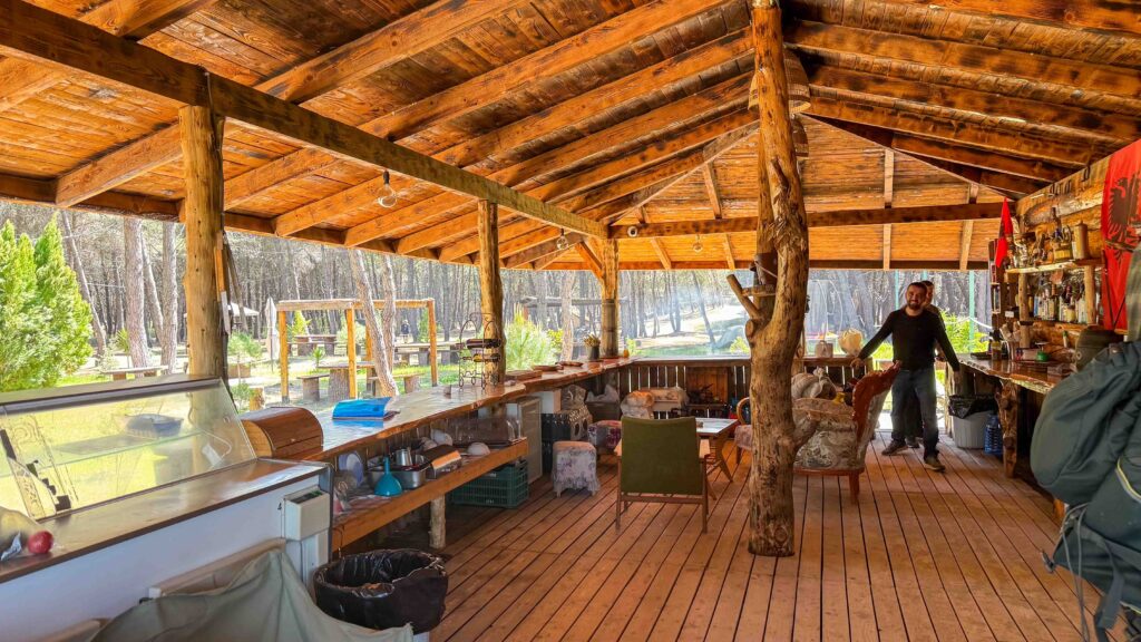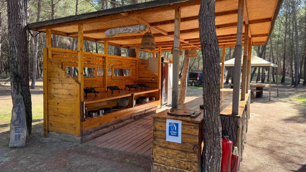 Der Camping mitten im Wald, ohne Parzellen, mit einfach sanitären Einrichtungen, einer Küche und einer Bar, an der man sich selbst bedienen sollte, gefiel uns spontan.