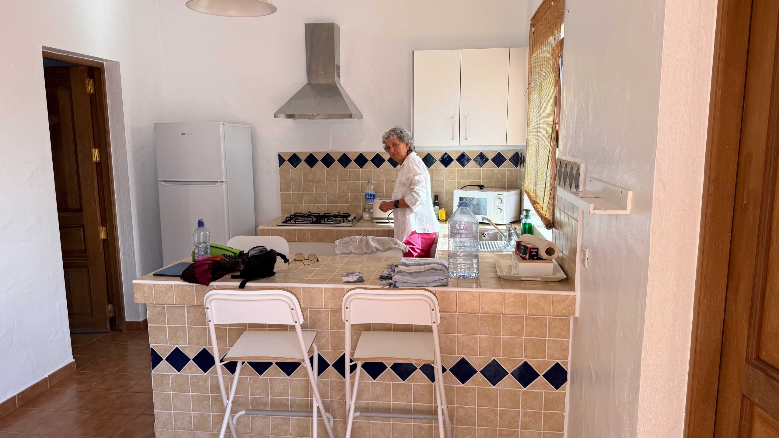 Unsere Ferienwohnung „Casa Volcan de Gayria lag ganz am Ortsende. Die Zufahrt ging durch ein Tor und wir parkten vor einem Wohnhaus, das am rechten Ende einen lila gestrichenen Anbau hatte. Die Wohnung wurde gerade geputzt, so dass wir noch 30 Minuten warten mussten. Zwei Grundstücke weiter wohnte ein Esel, der öfter mit lauter Stimme auf sich aufmerksam machte.