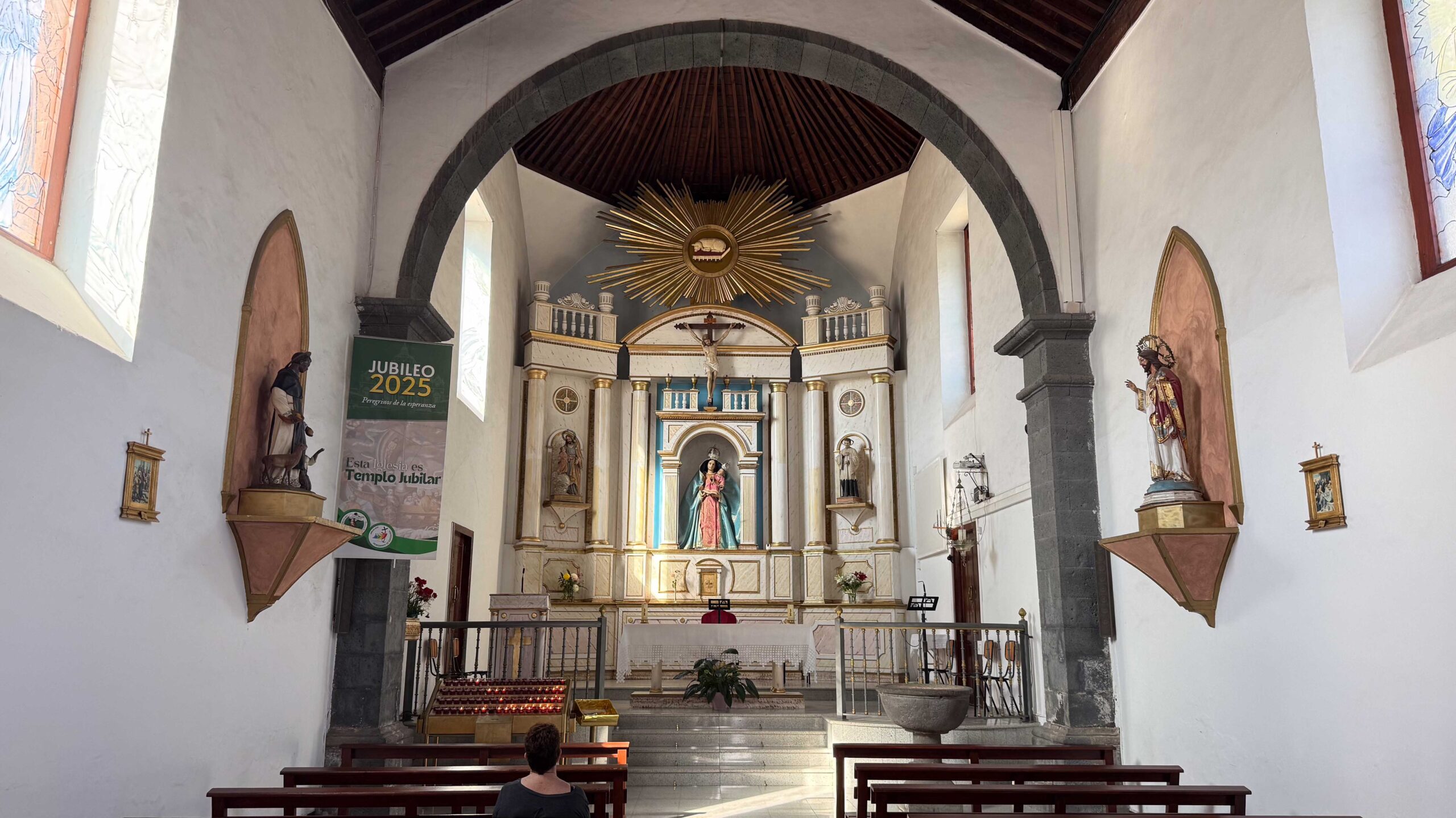 Wir reisten um kurz vor 10 Uhr ab und fuhren nochmals nach Puerto del Rosario, da das Wetter heute sehr gut war und die Temperatur wieder die 20 °C Marke erreichte. Schon bei der Anfahrt sahen wir, dass wieder ein Kreuzschiff – Aida cosma – im Hafen lag. Wir parkten im Hafen und gingen hoch in die Fussgängerzone. Schon auf dem Hinweg hörte man nur badischer Dialekt – alles Aida-Touristen. An einem Zaun stand eine kleine Gruppe und einer meinte, dass die Palme wohl künstlich wäre – voll der Irrtum. Die Aidaner hatten kleine Reiseführer mit den Sehenswürdigkeiten der Stadt bekommen, die sie jetzt abwanderten. Wir gingen bald zurück zum Parkplatz, da die Stadt außer einer älteren Kirche nicht viel zu bieten hatte. Die Aida war so hoch wie die Altstadt. Am Schiff wurden gerade die Aidaner für Inselrundfahrten in Busse verladen.
