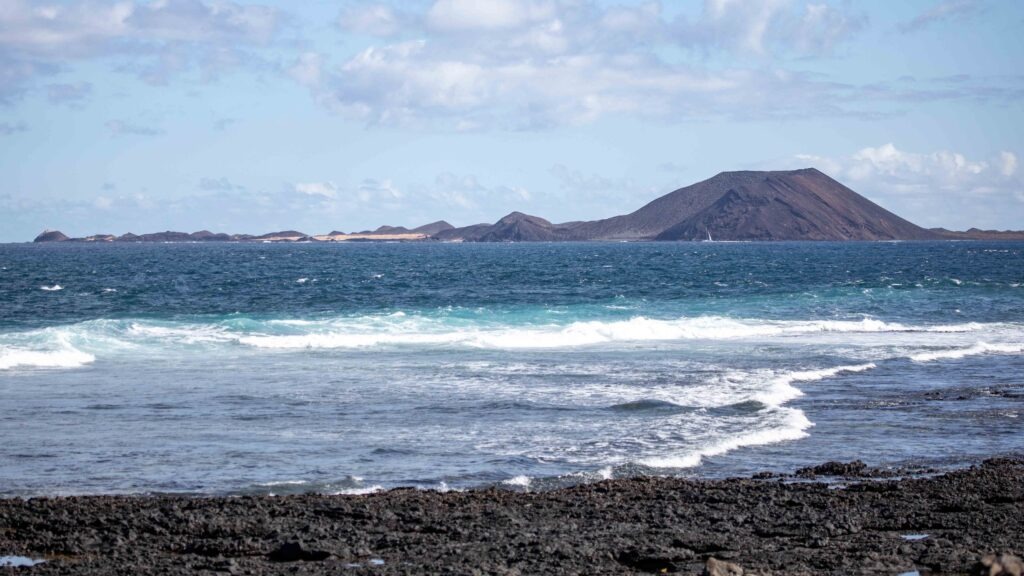 Man hatte gute Sicht auf Lanzarote und je weiter man kam auch auf die Insel Lobos, die vor Corralejo liegt und als Topziel Fuerteventuras beschrieben wird. Man kann nur in 2 Zeitslots auf diese Insel kommen – morgens von 10-14 Uhr und nachmittags von 14 – 18 Uhr, außerdem ist die Personenzahl begrenzt, die die Insel täglich besuchen dürfen. Wir verzichteten auf einen Besuch. Stattdessen setzten wir uns in ein Café und genossen den Anblick von dort aus. Am Café gingen Taucher in voller Montur vorbei, da das Tauchzentrum um die Ecke lag.