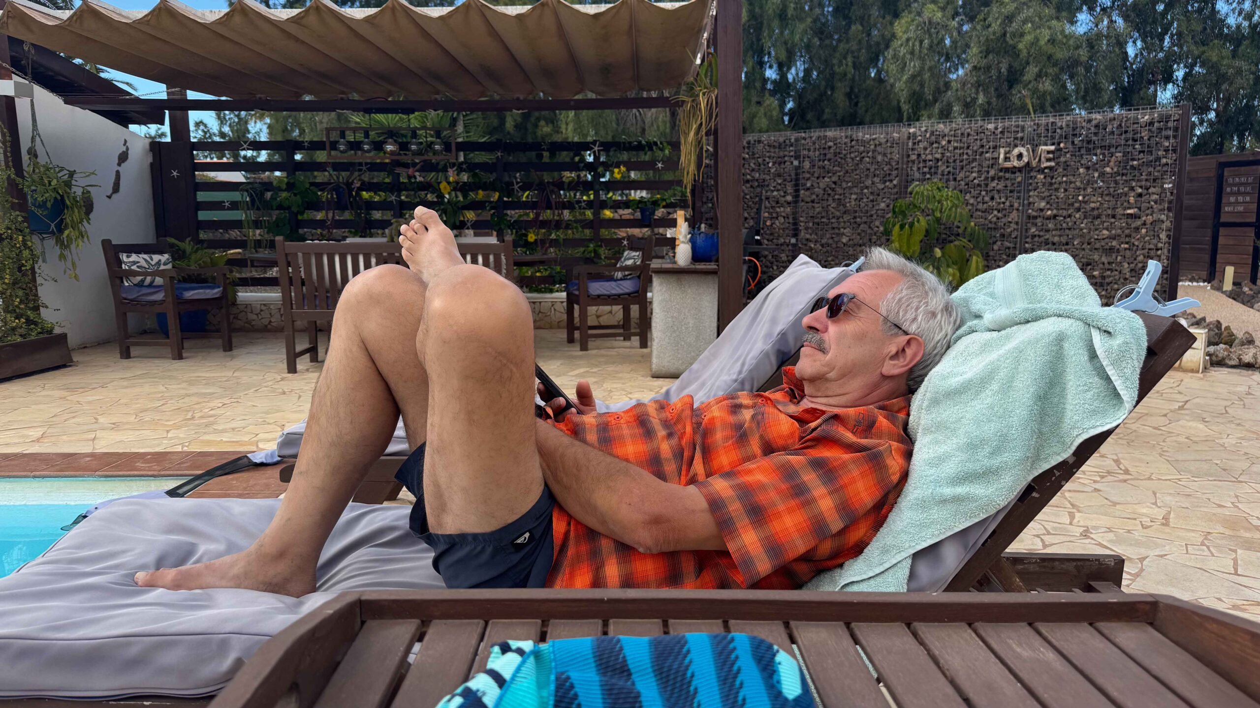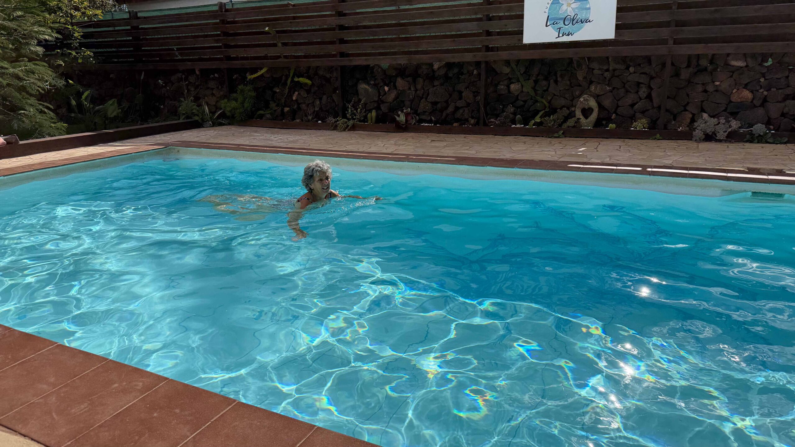 Wir fuhren dann zurück zu unserer momentanen Unterkunft. Während Gabi ihre ausufernde Weihnachtsdekoration montierte, stieg Karin tatsächlich in den Pool, der ihrer Meinung nach nur vielleicht 18 °C hatte. Gegen 17 Uhr fuhren wir wieder nach El Cotillo zum Abendessen im Nānā.