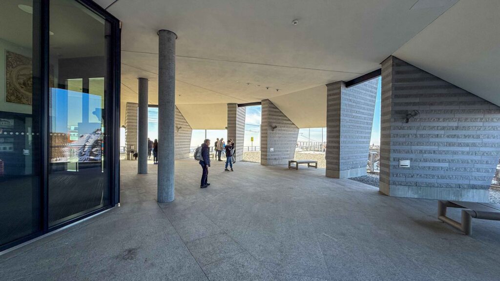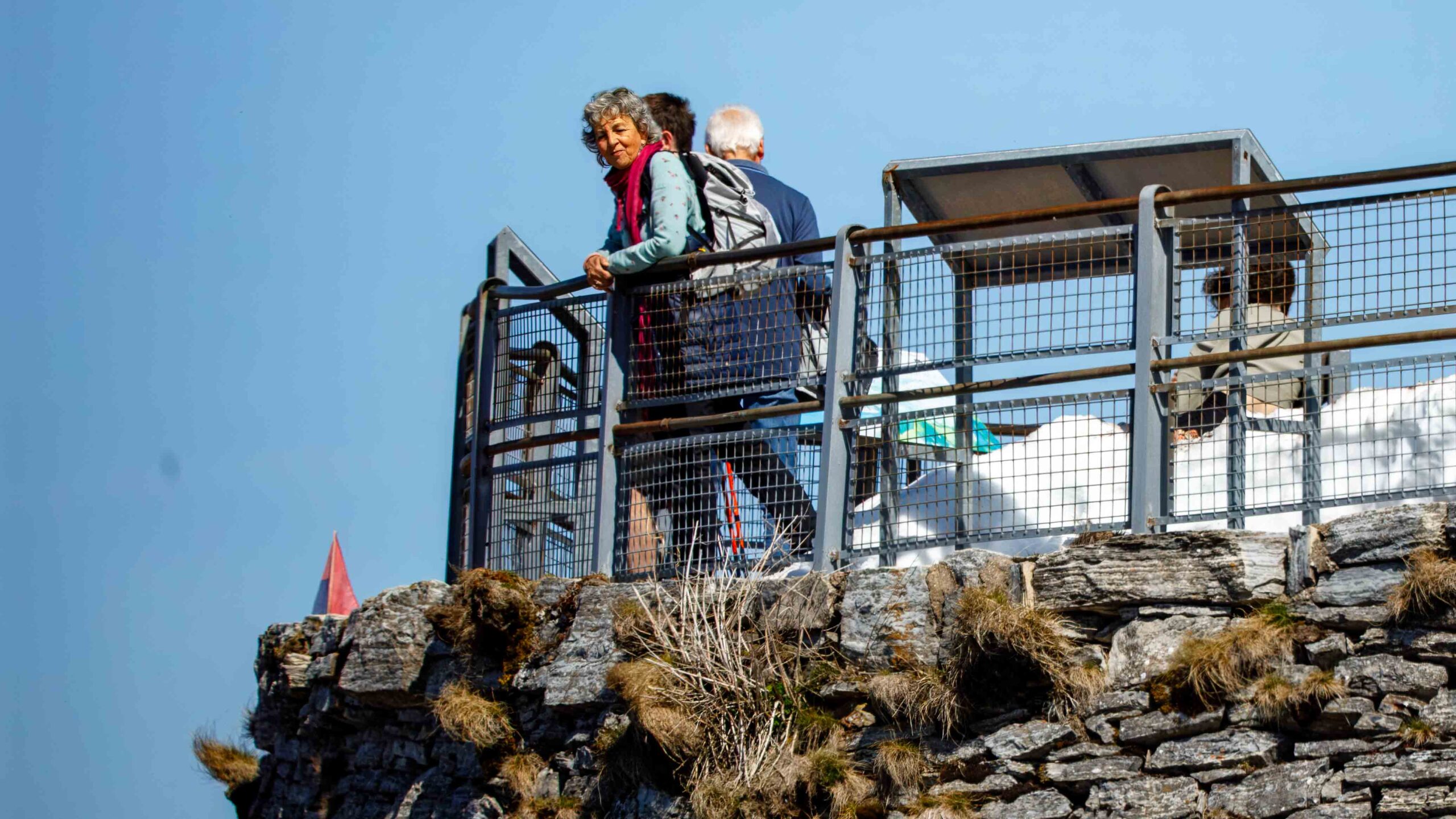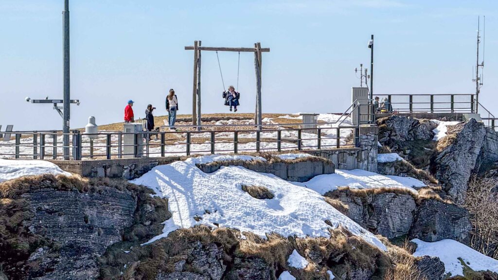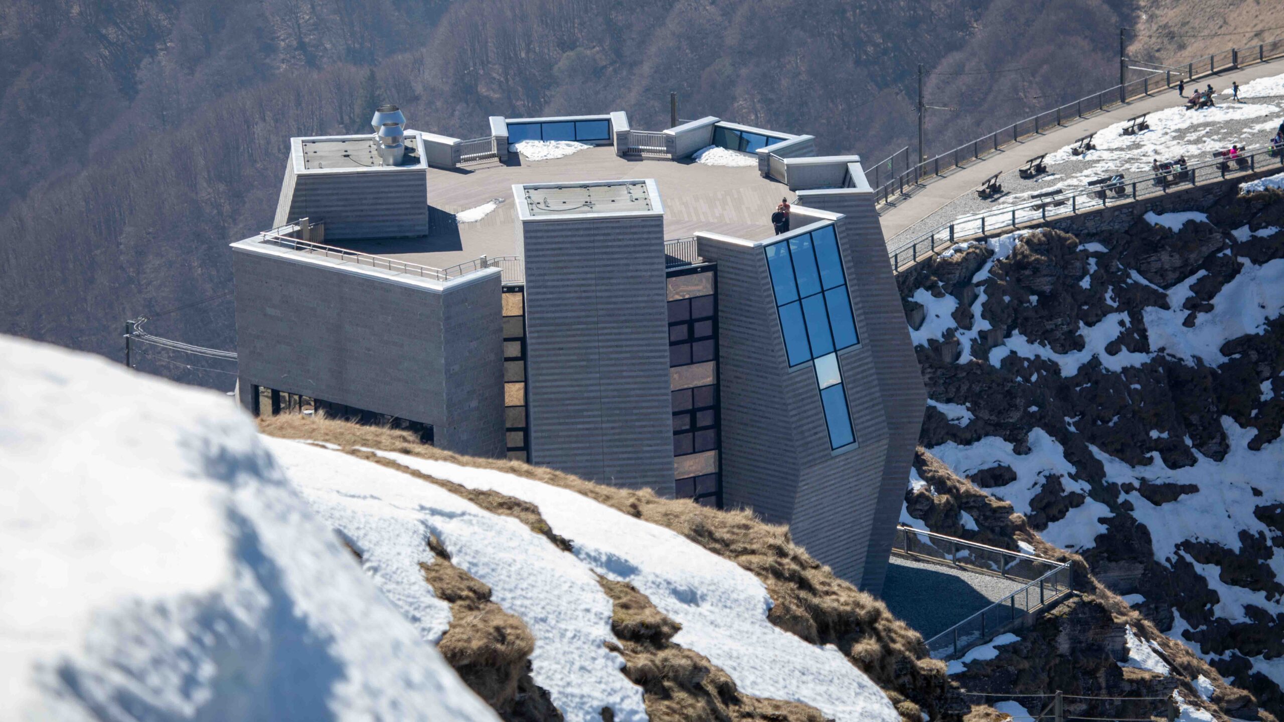 Die Bergstation, das „Fiore di Pietra“ („Steinblume“), ist ein recht futuristisches Bauwerk auf 1600 m Höhe, das vom Stararchitekten Mario Botta entworfen wurde, der einige solche Bauwerk in der Region verwirklichen konnte. Von hier hatte man bereits ein fantastisches Panorama. Es gab sogar eine grosse Schaukel auf einem „Grat“.