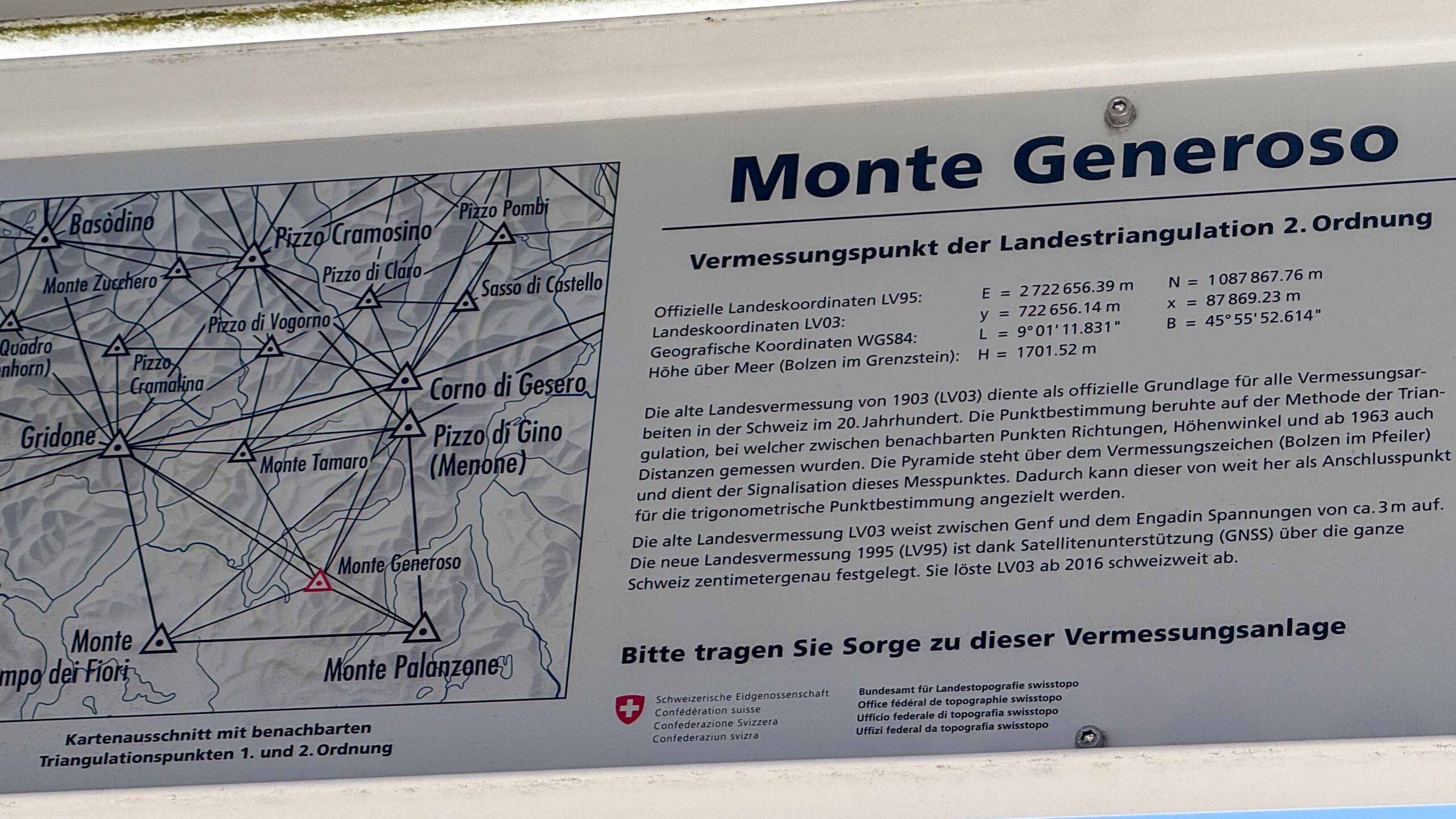 Heute fuhren wir nach Capolago-Riva, da am dortigen Bahnhof die Zahnradbahn auf den Monte Generoso startet. Wir wählten die Strecke über Osteno, dann permanent bergauf nach San Fedele Intelvi. Die Strasse war recht eng, aber 2 Autos passten gut aneinander vorbei. Allerdings nur dann, wenn kein Fahrradfahrer an der gleichen Stelle den Berg hinaufschnaufte. Zwei sehr eilige Italiener in Sportwagen überholten aber selbst auf dieser Strecke, denn sie mussten ja ihre Autos testen. Oben angekommen ging es recht eben weiter auf der Strada da Valmára bis zur Grenze an die Schweiz. Kurz vor der Grenze begann der engste und steilste Pass, den wir je gesehen haben. In jeder Haarnadelkurve mussten wir das Wohnmobil wieder zurückfahren, da die Kurve nicht reichte und das auf einer sehr steil abfallenden Strecke. Wir waren froh, endlich unten zu sein, als wir in nächsten Dorf an eine Stelle kamen, an der ein Verkehrsschild anzeigte, dass in der Fortsetzung nur 1,8 m Breite und 2,1 m Höhe zur Verfügung stand. Da geht unser Bus nie durch. Kurz vor dem Schild war eine sehr enge Abzweigung nach links, die wir gerade so nehmen konnten. Die Breite war vielleicht 30 cm weiter als unser Bus. Dann kam der lange Abstieg zum Ufer des Luganer Sees, steil und wieder Haarnadelkurven. Wir wollten gar nicht wissen, wie unsere Bremsen diese Abfahrt überstanden haben. Karin war unfähig während der Fahrt Fotos zu machen.
